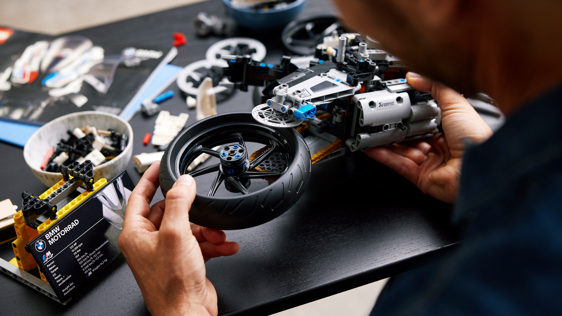You are driven by the fascinating original. It’s a passion that dominates you. For you, every detail, every millimetre, every technical feature counts. You love this feeling and bring it to life on the street, on the racetrack and now finally also at home: the first M LEGO® model ever and the largest LEGO® Technic motorcycle model to date has been created in close cooperation with LEGO® Technic designers: The LEGO® Technic M RR at a scale of 1:5. The specifications were clear – maximum precision to make what had previously been impossible possible. Parts were designed from scratch if they did not meet the strict requirements, something that was also done with the original. That’s exactly what “Born on the Racetrack. Build at home.” represents.