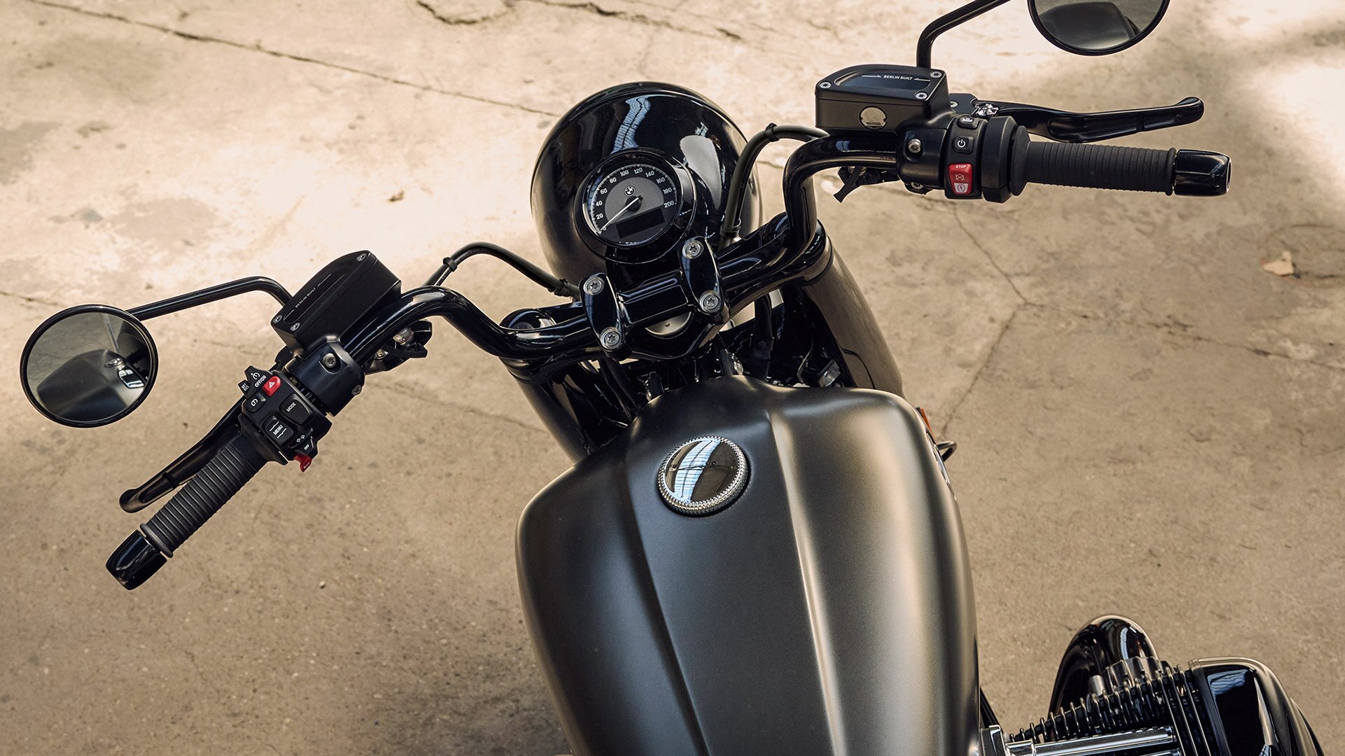 The iconic front with round LED headlight and 21-inch cast aluminium wheel leads the way towards the horizon. You are casually gripping the midi ape-hanger and resting your feet on the standard footboards, while the dragster seat gives you perfect support on long tours. The elongated bagger outline flows straight to the stylish rear end featuring hard-shell cases. This bike is an eye-catcher. Unmistakable: the unique boxer sound from the striking, dark chrome rear silencer.